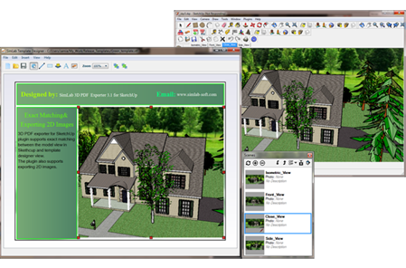 SimLab 3D PDF exporter for SketchUp plugin enables SketchUp users to share their 3D models in 3D PDF format. The newly added Template Designer enables users to create stunning templates easily to be used in 3D PDF export. Sample templates are included, and they can be ustomized in just few clicks to reflect the spirit of a product. To learn more about the pluguin, and its great features download the brochure.