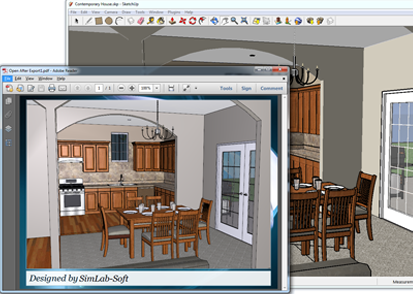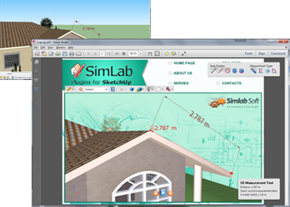 A user will be able to export SketchUp models in 3D PDF fromat by selecting the menu Plugins -> SimLab PDF Exporter -> Export 3D PDF.