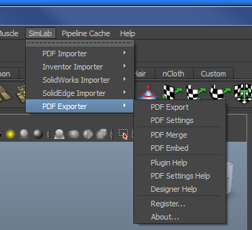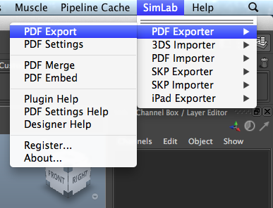 required PDF Settings, a user can export Maya models in 3D PDF format by clicking SimLab -> PDF Export -> PDF Export.