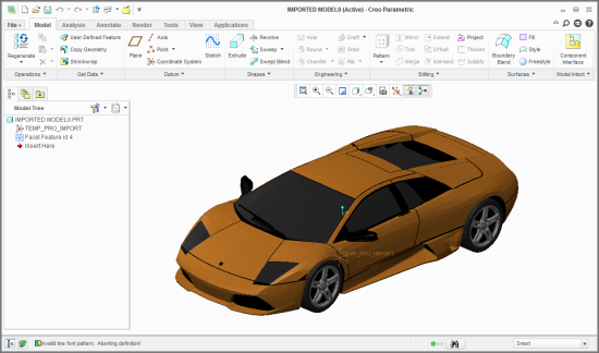 Now select the Import option and start importing (*.fbx) FBX models into Creo.