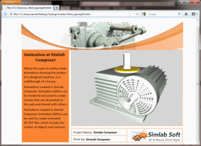 SimLab HTML exporter for Inventor plugin enables Inventor users to export Inventor 3D models in *.html file format. With this great capability Inventor users can now share their models on the web.