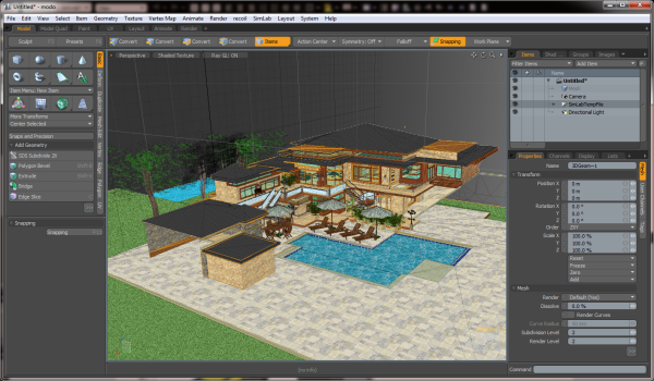 SimLab SkethcUp importer for Modo plugin enables Modo users to import SketchUp models into Modo. With the rich sketchUp 3D models pool, different models can now be imported and edited inside Modo.