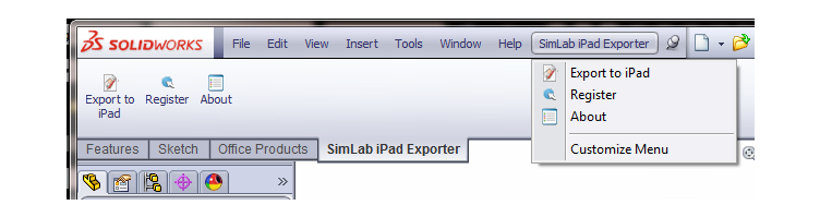 SimLab Android / iPad exporter for SolidWorks plugin, enables SolidWorks users to export their 3D models in *.zim file format. These files are readable by SimLab free application SimLab CAD Viewer for iPad/ iPhone and Android.